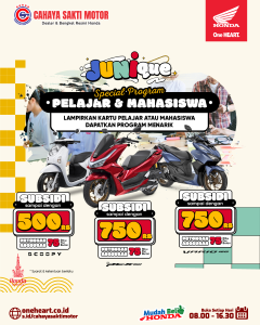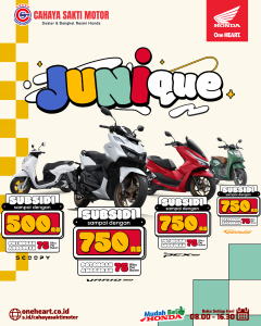 Bulan Juni ini, Cahaya Sakti Motor bawa promo yang unik, beda, dan pastinya hemat! Namanya “JUNIQUE” — Juni yang Unik, Promo yang Asik!