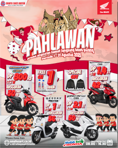 Jadikan momen kemerdekaan ini sebagai langkah baru untuk merdeka dalam mobilitas! Dapatkan motor Honda impianmu dengan cicilan super ringan dan berbagai hadiah menarik. Promo terbatas hanya sampai 31 Agustus 2025!